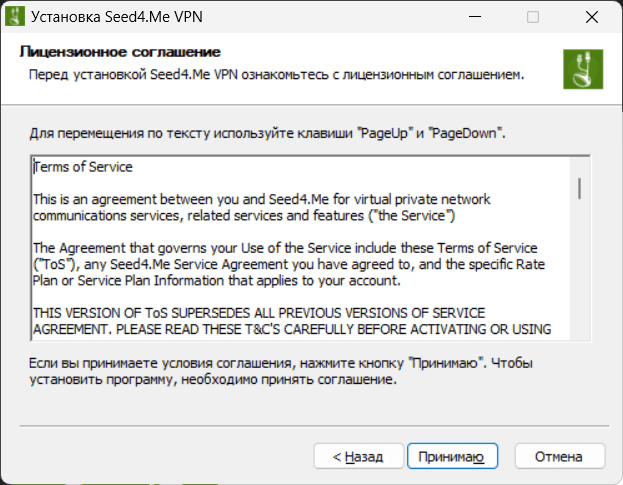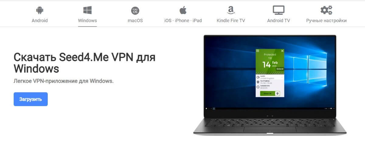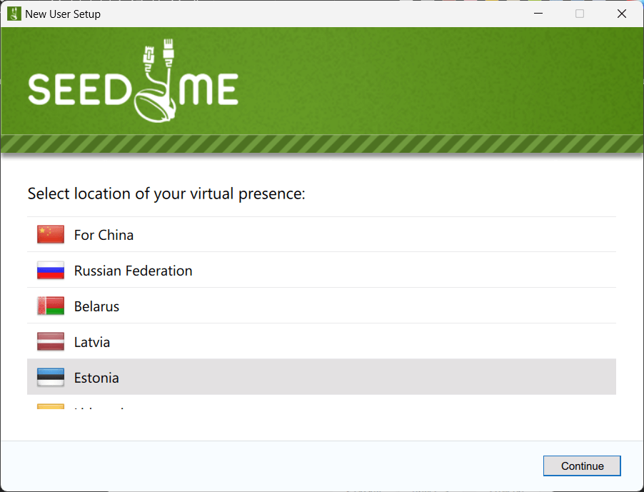 При первом входе будет предложено войти в вашу учётную запись Seed4Me. Это можно сделать позже через меню настроек. Далее выберите страну, через которую будет перенаправляться трафик.