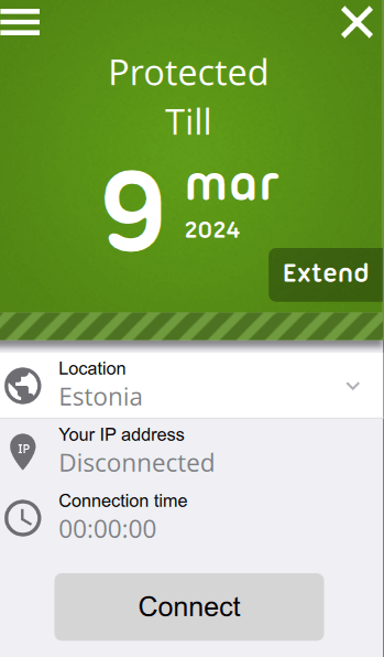 Нажмите Continue, после чего выберите пункт Connect для подключения к серверу. Отключить приложение можно повторно нажав на кнопку.